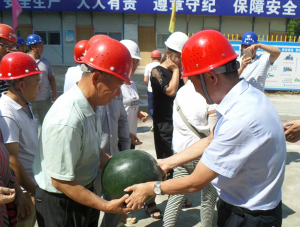 2017年7月13日上午,銅川市住建局副局長郭小放、銅川市新區(qū)管委會(huì)副主任張鐵成等相關(guān)人員來到陜西省華源建筑工程有限責(zé)任公司所屬海林御苑項(xiàng)目部,一同慰問在烈日下辛勤勞作的項(xiàng)目部全體員工,并親自為每位員工發(fā)放慰問品。隨后,在陜西省華源建筑工程有限責(zé)任公司總經(jīng)理郝曉兵、海林御苑項(xiàng)目經(jīng)理馮中樓等人員的陪同下,對海林御苑施工現(xiàn)場進(jìn)行了高溫作業(yè)環(huán)境檢查,要求一定要抓好夏季安全生產(chǎn)工作,杜絕一切安全隱患的發(fā)生,根據(jù)高溫季節(jié)特點(diǎn),合理安排工人作息時(shí)間,落實(shí)防暑降溫措施,盡量改善現(xiàn)場作業(yè)人員的工作和生活條件,一定要把安全放在首位。(楊楠)